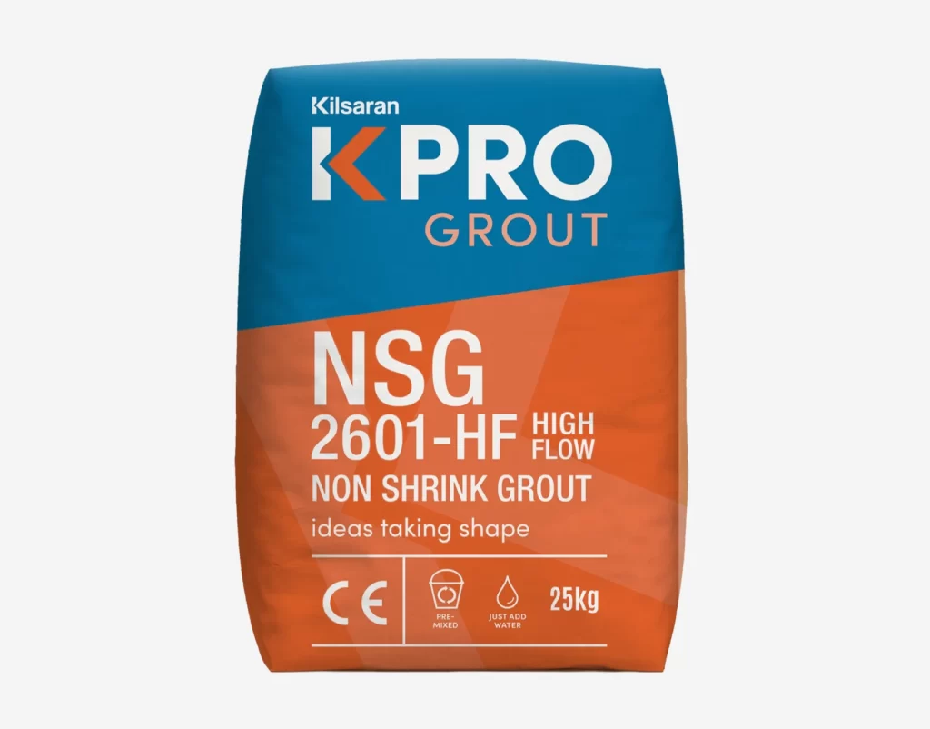 KPRO NSG 2601-TS is a pre-blended, highly flowable, fibre-reinforced non-shrink grout that fully meets the standards of EN 1504 Parts 3, as well as the Specification for Highway Works Volume 1: Clause 2601, as specified by the NRA and Department of Transport Publications. When mixed with a precise amount of clean water, this grout achieves excellent flowability with controlled shrinkage. NSG 2601-TS is specifically formulated for high flow with low water demand, delivering high early strength, zero shrinkage, and long-term durability.